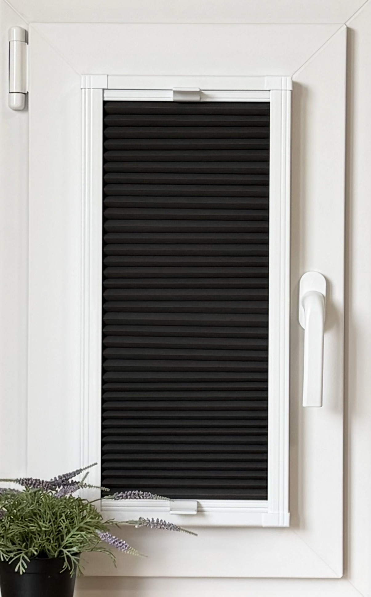 ✔ EASY INSTALLATION & HANDLING: Quick and easy installation . Depending on the system chosen, with fine screws in the glass strip or on the glass strip with angles, no drilling for adhesive mounting or clamping. The pleated blind is pre-tensioned and ready for installation. The pleated blind can be continuously adjusted via the top and bottom control rails made of high-quality aluminum (available in 16 colors).